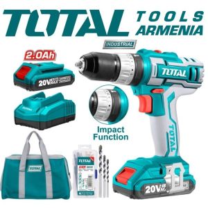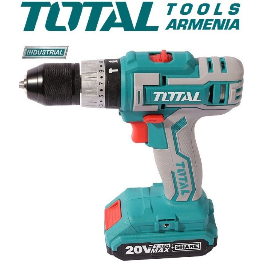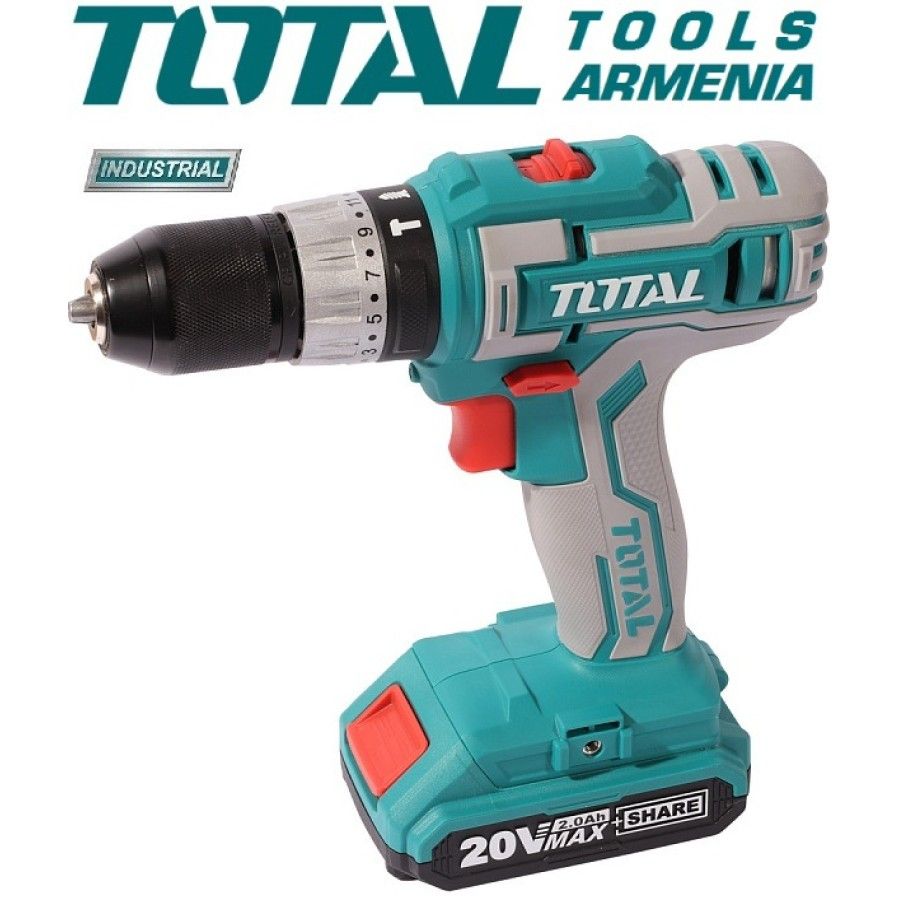 АккумуляторнаяУдарная Дрель - отвертка (шуруповерт)TotalTIDLI2002 20 В , 45Нм + 1 батарея Ударная дрельTIDLI2002 имеет 3 функции: дрель / резьбовой молоток / отвертка, продукт поставляется в очень солидном матерчатом мешке, включая: 1 корпус, 1 зарядное основание и 2 батареи . Аккумуляторный молоток TotalTIDLI2002 является частью нового продукта, который Total выпускает в 2019 году, высокого качества, но с низкой ценой. Этот продукт питается от литиевой батареи 20 В, новая технология батареи должна помочь сделатьпродукт у более прочной и продлить срок ее эксплуатации, корпус изготовлен из слоя АБС, выдерживает силу и хорошая теплостойкость. Устройство имеет компактную конструкцию, которая удобна для хранения и переноски при необходимости. Запасные части։ Мотор TIDLI2002-SP-7 Коробка Передач TIDLI2002-SP-3 Зажимной Патрон TIDLI2002-SP-2 Триггер TIDLI2002-SP-13 Мотор Редуктор TIDLI2002-SP-4