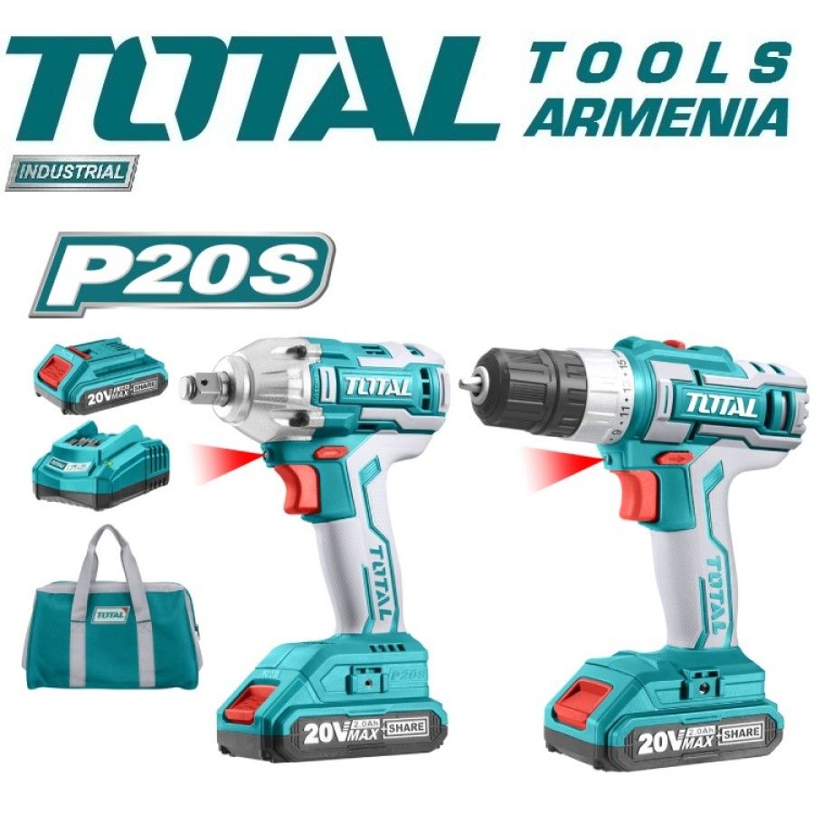 20 Վ պտուտակադարձիչի և 20 Վ հարվածային գայկավյորտի հավաքածու TOTAL TCKLI2017 24536