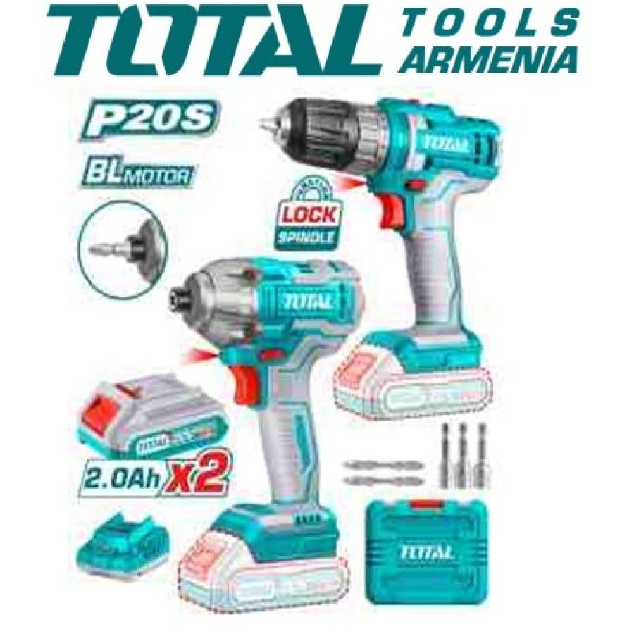Գայլիկոնիչի և մանեկադարձիչի հավաքածու 20Վ 2 մարտկոցով TOTAL TOSLI230708 35071