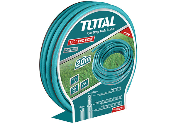 Шланг ПВХ 20м TOTAL THPH2001 Тип - шланг. Диаметр - 1/2 дюйма. Длина - 20м. Величина разрыва - 300psi. Значение испытания на растяжение - 880Н. Упаковано бумажной вешалкой.