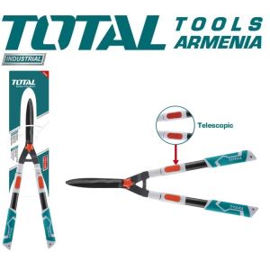 Телескопические ножницы для живой изгороди 710-860мм TOTAL THTS1516306 Вес - 1кг. Длина - 710-860мм. Материал клинка - углеродистая сталь . Алюминиевая ручка с мягким покрытием TPR. Упаковано бумажной картой. Ножницы для живой изгороди предназначены для стрижки травы и кустов (не повреждают листья и долго остаются острыми). Он поможет легко справиться с задачей благодаря удобным ручкам.