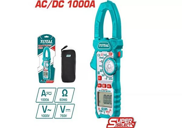 Токоизмерительные клещи переменного/постоянного тока TOTAL TMT4100051 Полученные результаты отображаются на ЖК-дисплее с крупными цифрами.Выбор предела измерения величин осуществляется вручную, достаточно установить нужное положение многопозиционного переключателя. Наличие подсветки облегчает работу в слабоосвещенных местах. Функции: Индикатор поэзии Освещение экрана Умение следовать инструкциям. 6000 отсчетов для автоматического сохранения данных Удержание данных Переменный ток: 60А/600А/1000А±(2,5% +8) Постоянный ток: 60A/600A/1000A±(2,5% +8) Напряжение переменного тока: 60 мВ/600 мВ/6 В/60 В/600 В ± (0,8% +3) 750 В ± (1% +4) Напряжение постоянного тока: 60 мВ/600 мВ/6 В/60 В/600 В ± (0,7% +3) 1000 В ± (0,8% +2) Сопротивление: 600 Ом/6 кОм/60 кОм/600 кОм/6 МОм ± (0,8% +3) 60 МОм ± (1,2% +3) Емкость: 10 нФ/100 нФ/1000 нФ/10 мкФ/100 мкФ/1000 мкФ/10 мФ/100 мФ ±(4,0% +5) Температура: -20~1000℃ (-8~1832°F) Бесконтактное обнаружение напряжения Проверка диодов ЖК-дисплей с подсветкой индикация низкого заряда батареи Авто-выключение С функцией вспышки