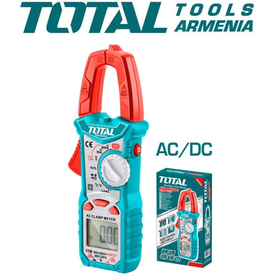 Цифровые Клещи Переменного Тока TOTAL TMT46004 Полученные результаты отображаются на ЖК-дисплее с крупными цифрами.Выбор предела измерения величин осуществляется вручную, достаточно установить нужное положение многопозиционного переключателя. Наличие подсветки облегчает работу в слабоосвещенных местах. Функции: Индикатор поэзии Освещение экрана Умение следовать инструкциям. 6000 отсчетов для автоматического сохранения данных Ток переменного тока: 6А / 60А / 600А / ± (2,5% +8) Постоянный ток: 60A / 600A ± (2,5% + 5) переменное напряжение: 600 В ± (0,8% +5) постоянное напряжение ::600 В ± (0,8% +3) резистор:6 кОм / 60 кОм ± (1,0% +3) Емкость: 10 нФ / 100 нФ / 1 нФ / 10 мкФ / 100 мкФ / 1 мФ / 10 мФ / 100 мФ ± (4,0% + 3) Частота: 1% ~ 99% ± (1,0% + 2) Диапазон температур: -40 ° C ~ 1000 ° C (-40 ° F ~ 1832 ° F) ± (1,0% + 2) цветная упаковка MeetingГарантия: 6 месяцевВес: 0.45 кг