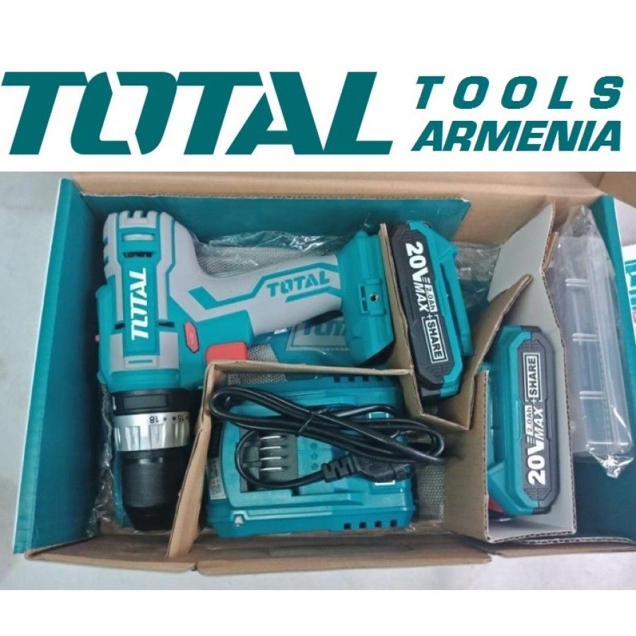 АккумуляторнаяУдарная Дрель - отвертка (шуруповерт)TotalTIDLI20025 20 В , 45Нм + 1 батарея Ударная дрельTIDLI20025 имеет 3 функции: дрель / резьбовой молоток / отвертка, продукт поставляется в очень солидном матерчатом мешке, включая: 1 корпус, 1 зарядное основание и 2 батареи . Аккумуляторный молоток TotalTIDLI20025 является частью нового продукта, который Total выпускает в 2019 году, высокого качества, но с низкой ценой. Этот продукт питается от литиевой батареи 20 В, новая технология батареи должна помочь сделатьпродукт у более прочной и продлить срок ее эксплуатации, корпус изготовлен из слоя АБС, выдерживает силу и хорошая теплостойкость. Устройство имеет компактную конструкцию, которая удобна для хранения и переноски при необходимости.