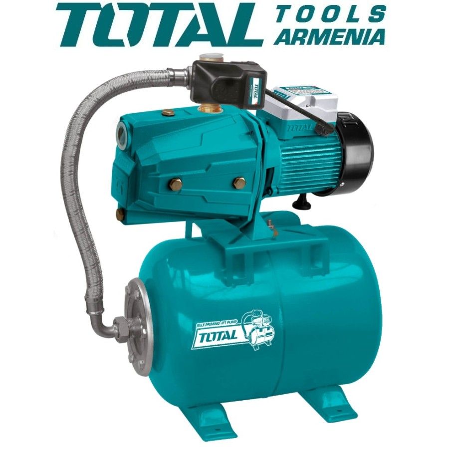 Автоматический самовсасывающий струйный насос 750Вт TOTAL TWP47506 Напряжение: 220 В - 240 В - 50 Гц․ Мощность: 750 Вт (1 л.с.) . Медный двигатель .Латунная крыльчатка . Частота вращения։ 3450 об / мин․ Производительность։ 3600 л / час․ Максимальная высота: 45 м․ Максимальнаявысотавсасывания: 9 м․ Диаметр трубы: вход - 1″, выход - 1″. Степень защиты: IPX4. Цилиндрический бак: 1шт 24л. Переключатель давления: 1шт . Шланг из нержавеющей стали: 1 шт. Манометр: 1 шт. Латунь 3-ходовой: 1шт . Длина кабеля: 0.15 м․ Гарантия։ 1 год. Вес: 20 кг. Самовсасывающий струйный насосе TWP311006 используется прочный сплав, хорошая прочность.В частности, двигатель изготовлен из 100% чистой медной проволоки, что помогает машине работать бесперебойно и имеет меньшую мощность.Пропеллеры изготовлены из прочной меди. Изготовлен из высококачественных материалов, поэтому он не окисляется, абразив и удобен для использования в самых разных условиях окружающей среды, не беспокоясь о каких-либо проблемах.Материал устойчив к коррозии, выдерживает суровые условия работы, для длительного использования. Изделие выполнено в компактном виде, удобно перемещается, быстро и не занимает много места.
