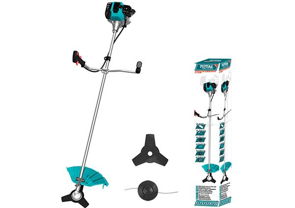 Бензиновый триммер 1.4 кВт TOTAL TP5524421 Бензиновая мотокоса TOTALявляется надежным, хорошо сбалансированным и удобным инструментом для сада. Благодаря своей элегантной эргономичной форме ее можно использовать на самых сложных и труднодоступных участках, там, где применение газонокосилки затруднено. Современный, хорошо продуманный дизайн позволяет надежно удерживать триммер в руках и легко, эффективно, без лишних усилий выполнять работу. Мотокоса TOTAL оснащена бензиновым 2-х тактным двигателем объемом 52 куб/см, мощностью 1400Вт с максимальной скоростью 9000 об/мин. Объем топливного бака мотокосы 1200 мл. Ширина среза охватывает 420мм. Для резки используется леска 2.4мм x 4м. Инструмент является незаменимым помощником в ежедневном уходе за газоном и садом. Для удобства использования конструкцией предусмотрена вторая рукоятка. Мощность:1.4 Кв. Мощность: 2.2 л.с. Оборотов: 9000 об/мин. Рабочий объем: 52 куб.см . Емкость: 1200 мл․ Ширина резки: 420 мм. Ширина режущей кромки: 255 мм. Вес: 9 кг. Гарантия: 1 Года. 2 - тактный двигатель. С возможностью удлинения. С 2 функциями: триммер и резак. Двигатель с воздушным охлаждением, одноцилиндровый. С леской TGTLS2545 . Лезвие для кустореза TGTBCB95 .