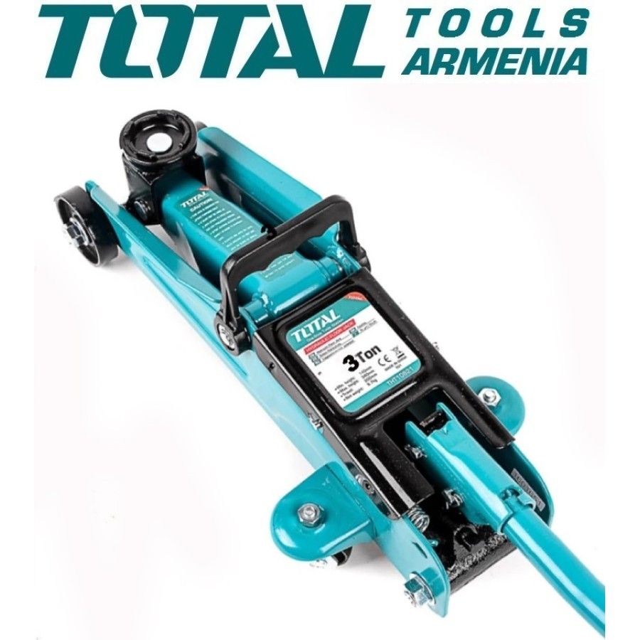 Домкрат гидравлический подкатной 3т TOTAL THT10832 Грузоподьемность 3т Высота подхвата 135мм Высота подьема 410мм Вес 16кг Материал корпуса металл Рабочий ход 275мм Гидравлический подкатной домкрат 3 т. TOTAL THT10832 удобен в использовании при работе с автомобилями с небольшим клиренсом. Грузоподъемность рассчитана на работу с легковым транспортом. Имеется длинный рычаг и удобная рельефная рукоятка для переноски инструмента.