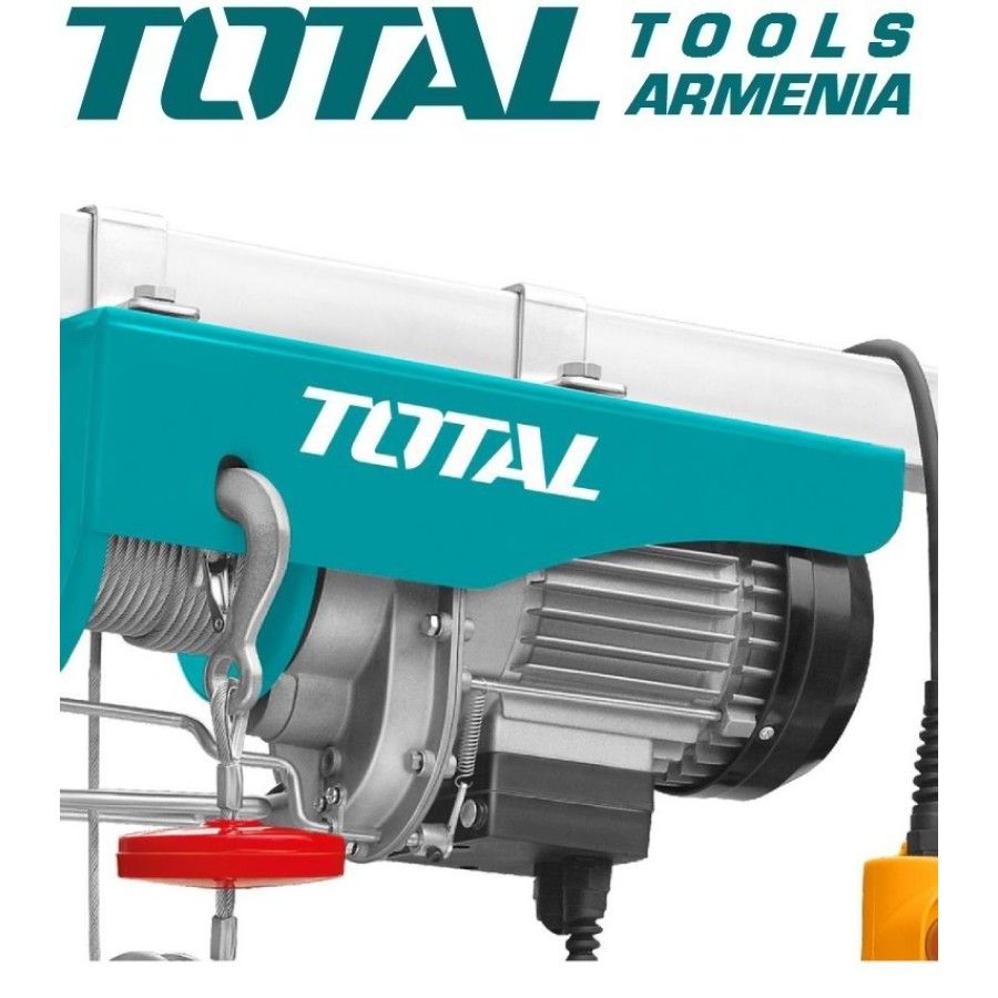 Электрическая лебедка (Подъемник) Total TLH1952900 Вт. Запасные части: Компоненты Ручки И Переключателя TLH1952-SP-55-58 Мощность: 900Вт. Напряжения: 220-240 В 50 Гц. Подьемный вес: 250кг (одинарная линия) 500 кг (двойная линия). Высота подьема: 18 м (одинарная линия) 9 м (двойная линия). Скорость подьема: 8 м/мин (одинарная линия) 4 м/мин (двойная линия).Толщина троса: 4 мм. Есть аварийный выключатель. Вес։ 16.185 кг. Гарантия։ 1 год.