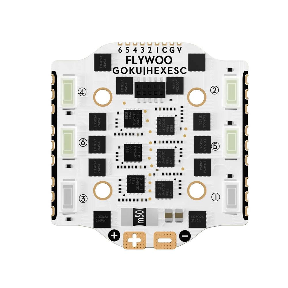 The Flywoo GOKU HEX V3 is a 6-in-1 BLHeli_S ESC designed for 2-4S LiPo setups, offering 20A continuous current for reliable performance. With a compact 33×35mm board and 16mm M3 mounting holes, it integrates seamlessly into tight builds. This ESC supports Oneshot125, Oneshot42, Multishot, DShot150/300/600, and PWM protocols. Weighing just 6.4g, this ESC delivers smooth and efficient power management without added bulk.
