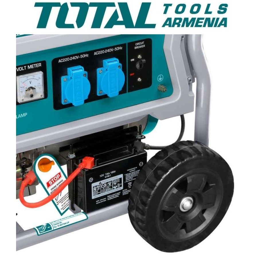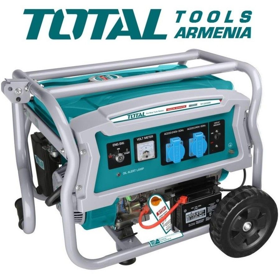 Генератор бензиновый (Стартерам) TP135006E 3500 Вт Предназначен для оперативного снабжения электроэнергией. В случае сбоев энергоснабжения позволяет обеспечить освещениемдом, а также работу основных бытовых устройств (электрический чайник, холодильник, обогреватель и пр.). Благодаря простой и компактной конструкции машина проста в использовании и перемещении. Скорость работы машины достаточно плавная, плавная, поэтому шум низкий. При запуске двигатель очень быстрый, чувствительный к взрыву и может экономить топливо. Максимальная мощность : 3500 Вт. Постоянная мощность: 2800 Вт. Электропитание: 220 В - 240 В / 50 Гц / 1 фаза. Номинальная частота: 50Гц. Источник питания: DC-12V / 8.3A. Н оминальная скорость : 3000об / мин․ Д вигатель : 4-Т актный - OHV . Емкость цилиндра: 208 мл. Время непрерывной работы : 11 часов . Система охлаждения вентилятором. Система запуска: зажигание / блокировка Электрический . Система зажигания: TCI . Сила двигателя: 8 л.с. Емкость топливного бака: 15 л. Шум: 95дБ. Вес: 51 кг. Генератор с медной катушкой, со вспомогательной ручкой и колесами.Гарантия։ 1 год.