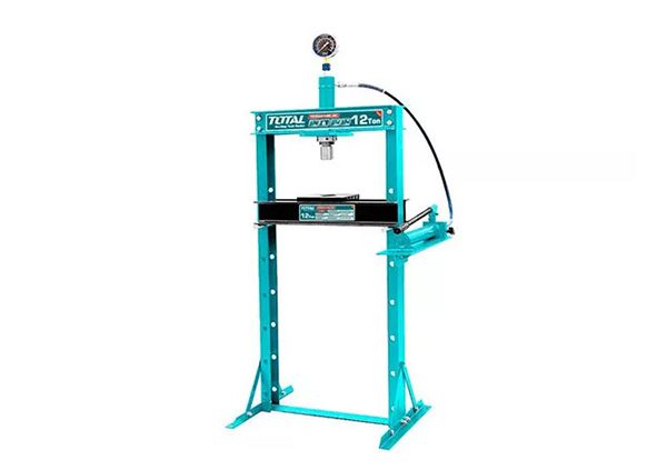 Гидравлический автомобильный пресс TOTAL THSPR1201 Гидравлический пресс машины выполняет несколько рабочих функций, в том числе: Формование Коррекция Сжатие Изгиб Устройство управляется вручную, гидромотор значительно облегчает работу. Используется в основном в автомастерских для затягивания автомобильных деталей и подшипников. Максимальный подъемный вес: 12 тонн Сжатие: 175 мм Рабочий диапазон: 0 ~ 920 мм
