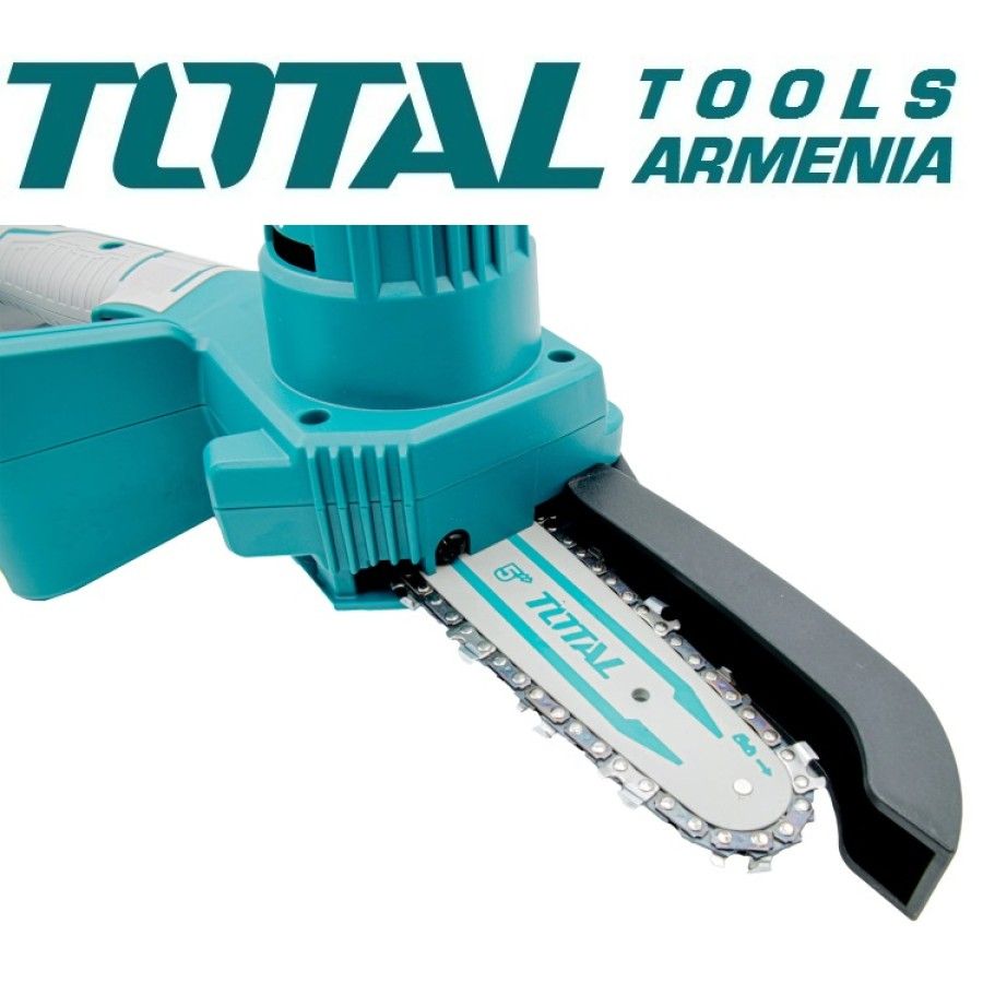 Литий-ионная мини-пила 20 В TOTAL TGSLI2058 Напряжение батареи: 20 В Напряжение зарядки: 220-240В/50-60Гц. Длина стержня: 13см. Скорость цепи: 5 м/с. В наборе: 1 шт. 5" пильная цепь 1 шт. 5" линейка для цепи 1 шт. ключ 1 шт. бутылка для масла Аккумулятор и зарядное устройство продаются отдельно Упаковано в цветную коробку. Аккумуляторная электрическая пила TOTALTGSLI2058 . Цепная пила Total предназначена для быстрого распила свежей, сухой и влажной древесины различной толщины и конфигурации, ДСП, древесины из мелких и средних бревен.
