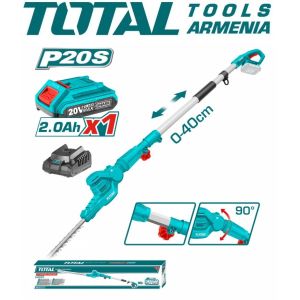 Литий-ионный кусторез TOTAL TPHT2016012 Модель №. TPHT2016012 Напряжение 20В Максимум. скорость 2800 об / мин Длина клинка 46 см Расстояние между зубьями 18 мм Батарея в комплект входит, совместима с батареями 2,0 Ач Зарядное устройство в комплект входит