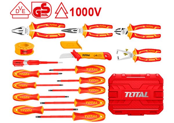 Набор диэлектрических инструментов 26шт TOTAL THKITH2601 Сертификация VDE / GS 1 шт. Изолированные длинногубцы: 160 мм (6 ″) 1 шт. Изолированные комбинированные плоскогубцы: 180 мм (7 ″) 1 шт. Изолированные диагональные кусачки: 160 мм (6 дюймов) Изолированная шлицевая отвертка из 3 шт .: SL3.0x75 мм, SL4.0x100 мм, SL5.5x125 мм 2 отвертки с изолированной головкой Phillips: PH1x80 мм, PH2x100 мм 1 шт. Изолированный разводной ключ: 200 мм (8 ″) 14 изолированных шестигранных головок (1/2 ″): 10 мм, 11 мм, 12 мм, 13 мм, 14 мм, 16 мм, 17 мм, 18 мм, 19 мм, 22 мм, 24 мм, 27 мм, 30 мм, 32 мм 2 изолированные удлинители (1/2 ″): 125 мм, 250 мм Изолированный ключ с храповым механизмом 1/2 ″ - 1 шт. Упаковано в пластиковую коробку