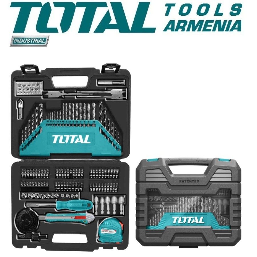Набор сверл 118шт TOTAL THKTAC011182 6 сверл по камню: 3 мм, 4 мм, 5 мм, 6 мм, 8 мм, 10 мм 6 шт. Спиральных сверл по дереву: 3 мм, 4 мм, 5 мм, 6 мм, 8 мм, 10 мм 3 плоских сверла по дереву: 16 мм, 20 мм, 25 мм 60 бит отверток (25 мм) 1 шт. Магнитный держатель для бит Магнитный стержень, 100 мм - 1 шт. 5 магнитных гаек (48 мм): 7 мм, 8 мм, 10 мм, 12 мм, 13 мм 1 шт зенковка: 12 мм 1 шт. Измеритель диаметра сверл 4 кольцевые пилы (углеродистая сталь) 1 шт. Кольцевая пила 10 головок 1/4 ″: 4 мм, 5 мм, 6 мм, 7 мм, 8 мм, 9 мм, 10 мм, 11 мм, 12 мм, 13 мм 1 шт. Адаптер для розетки, от 4 до 6 мм 1 шт. Стальная измерительная лента, 3 м 1 шт. Нож с отламывающимся лезвием 16 шт. Спиральных сверл HSS: 1 мм, 1,5 мм, 2 мм, 2,5 мм, 3 мм, 3,5 мм, 4 мм, 4,5 мм, 5 мм, 5,5 мм, 6 мм, 6,5 мм, 7 мм, 8 мм, 9 мм, 10 мм