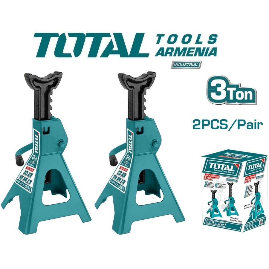 Подставка для автомобиля 3 т TOTAL THJS0301 Грузоподъемность 3 т. 2 штуки / пара. Мин. высота: 270 мм. Макс. высота: 410 мм. Ход : 140 мм. Вес 6 кг. Подставка для автомобиля TOTAL THJS0301 предназначен для использования в автосервисах, на станциях ТО, в автопарках различных предприятий.Трещотка обеспечивает точную регулировку и быстрое снятие. Твердая стальная ручка, самоблокирующаяся трещотка. Большое седло, единая конструкция рамы. Стойка из ковкого чугуна. Вместимость: 3 тонны. Упаковка: цветная коробка.