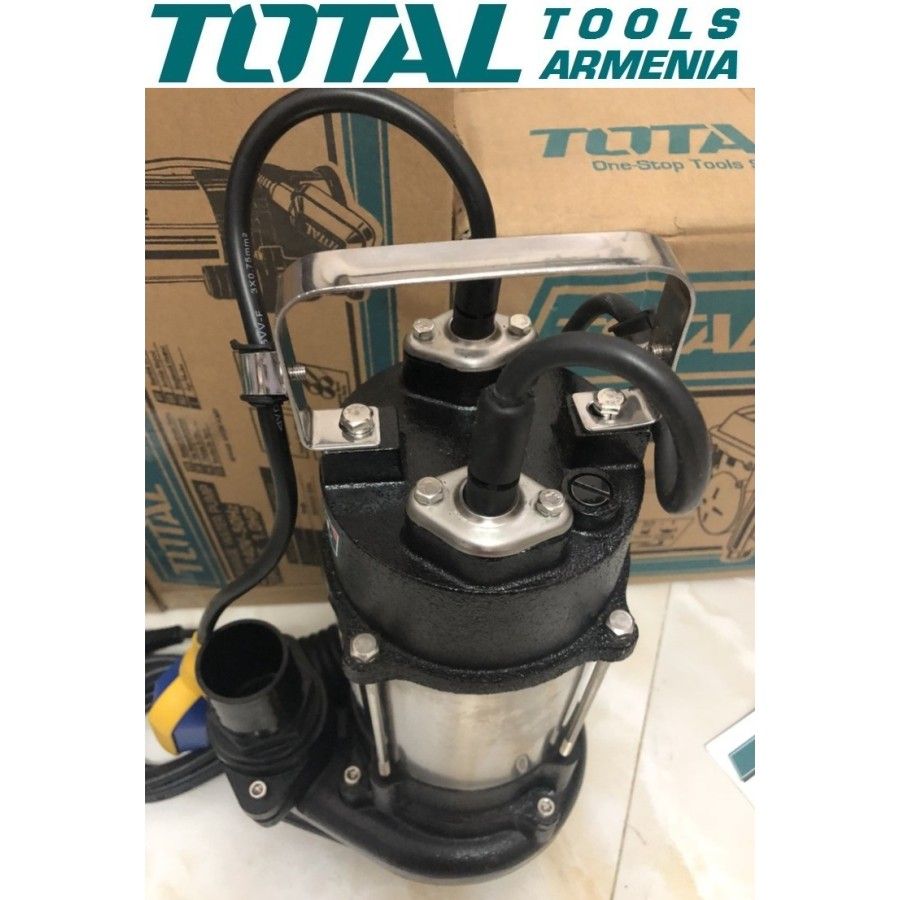 Погружной насос для сточных вод 1500Вт TOTAL TWP7150026 Напряжение - 220-240В 50Гц. Мощность - 1500 Вт (2 л.с.). Максимум. высота - 14.5м . Максимум. расход - 350л / мин. Основание из нержавеющей стали. Винты из нержавеющей стали. Вал из нержавеющей стали. Диаметр трубы - 2 дюйм. Длина кабеля - 9м. Тепловая защита. Упаковано в картонную коробку. Погружной насос предназначен для работы с условно грязной водой. Возможность перекачивания жидкости со скоростью 21 м3 / ч. Поплавковый выключатель исключает работу всухую и предотвращает повреждение насоса. Для удобства переноски предусмотрена ручка.