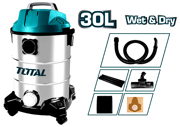 Пылесос TotalTVC13301 1300Вт Запасные части։ Фильтр Мыльный TVC13301-SP-40 Бумажный Мешок Для Пыли TVC13301-SP-37 МоторTVC13301-SP-9 Напряжение:220-240V 50/60 Гц Емкость: 30 л. Расход воздуха : 1.8 м3/ мин Давление вакума (кПА) : более 18 кПа Громкость шума: 11 - 82 дБ. C функцией контроля скорости. С термопредохранител. С мягким стартом. Гибкий шланг. Вес: 5.4 кг. Гарантия: 1 Года