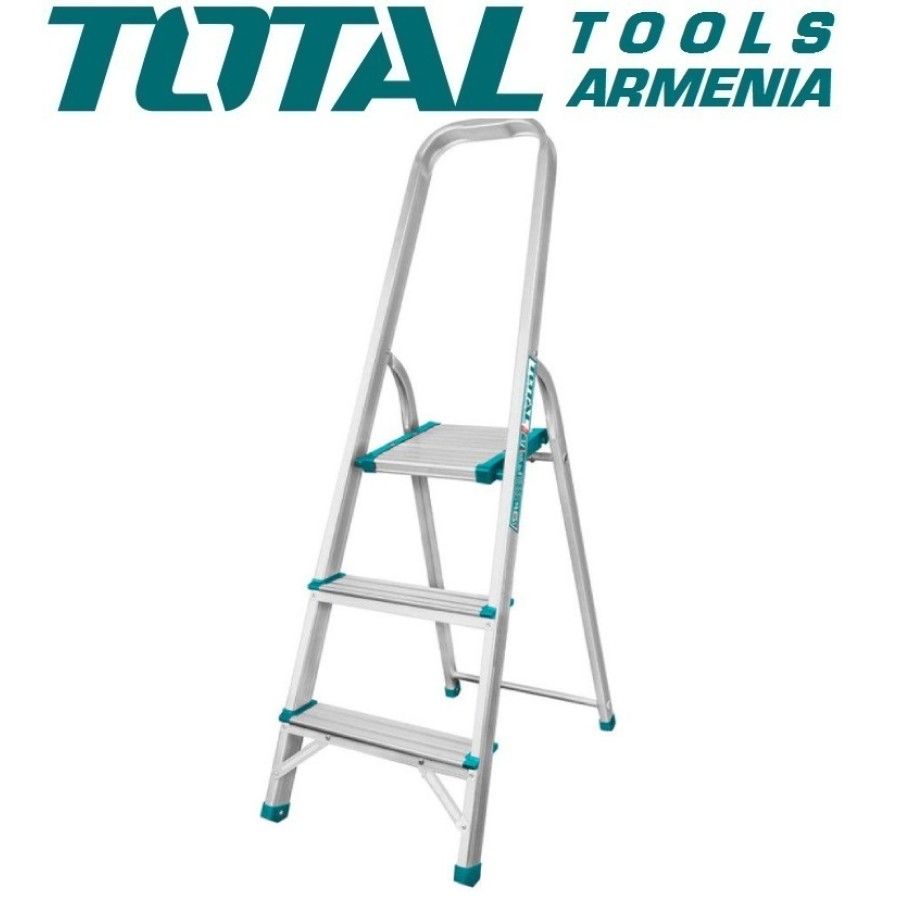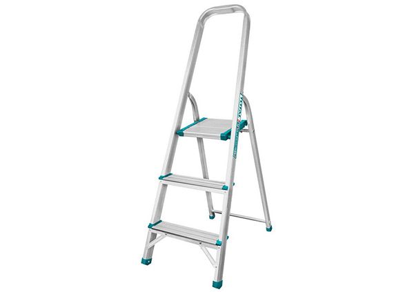 Стремянка 3 ступени TOTAL THLAD06031 Размер - 260х250х30мм. Шаги - 3. Вес груза - 150кг. Вес - 2,52 кг. Стремянка TOTAL способна выдержать вес 150 кг. Подходит для частного использования. Достоинства модели: устойчивость к коррозии и механическим повреждениям, широкие рифленые ступени.