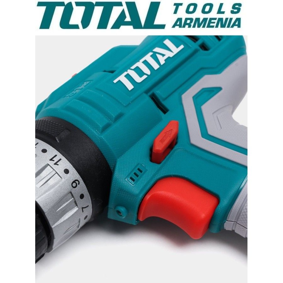 Ударная дрель с аккумулятором 12В TOTAL TOSLI23022 Напряжение: 12 В Скорость без нагрузки: 0-400/0-1500 об/мин Максимальная скорость экспозиции: 22500/мин Максимальный крутящий момент: 20 Нм Максимальное количество ходов: 0,8-10 мм Максимальный крутящий момент: 18+1+1 Напряжение зарядки: 220-240 Вт ~ 50/60 Гц Встроенный рабочий свет Коллекция включает в себя: 2 аккумуляторных блока по 1,5 Ач 1 зарядное устройство 1 набор вращающихся отверток из 45 предметов 1 набор из 16 сверл по металлу, бетону и дереву