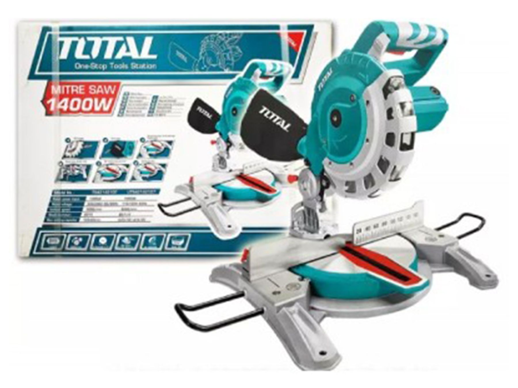 Электрическая Угловая Пила Total TS42142107 1400 Вт Это универсальный электроинструмент, предназначенный для резки и торцовки различных деревянных заготовок, подгонки деревянных профилей, плинтусов и наличников. Данная модель отличается продолжительным сроком службы за счет двигателя с высоким рабочим ресурсом и устойчивого к повреждениям алюминиевого основания. Система пылеудаления с мешком для сбора опилок отвечает за чистоту и хорошую видимость зоны реза. Для удобства работы предсмотрены струбцина для фиксации заготовки и расширители рабочего стола. Защитный кожух повышает безопасность оператора. Мощность: 1400Вт. Напряжение: 220 - 240 В / 50 - 60 Гц. Без Саласки. Частота вращения: 5000 об/мин. Диаметр оснастки: 210 мм. Ширина реза 0° X 0 ° : 120 х 60 мм. Ширина реза45° X 0 ° : 83 х 60 мм. Ширина реза 0 ° X 45 ° : 120 х 30 мм. Ширина реза 45 ° X 45 ° :83 х 30 мм. Вес: 8кг.