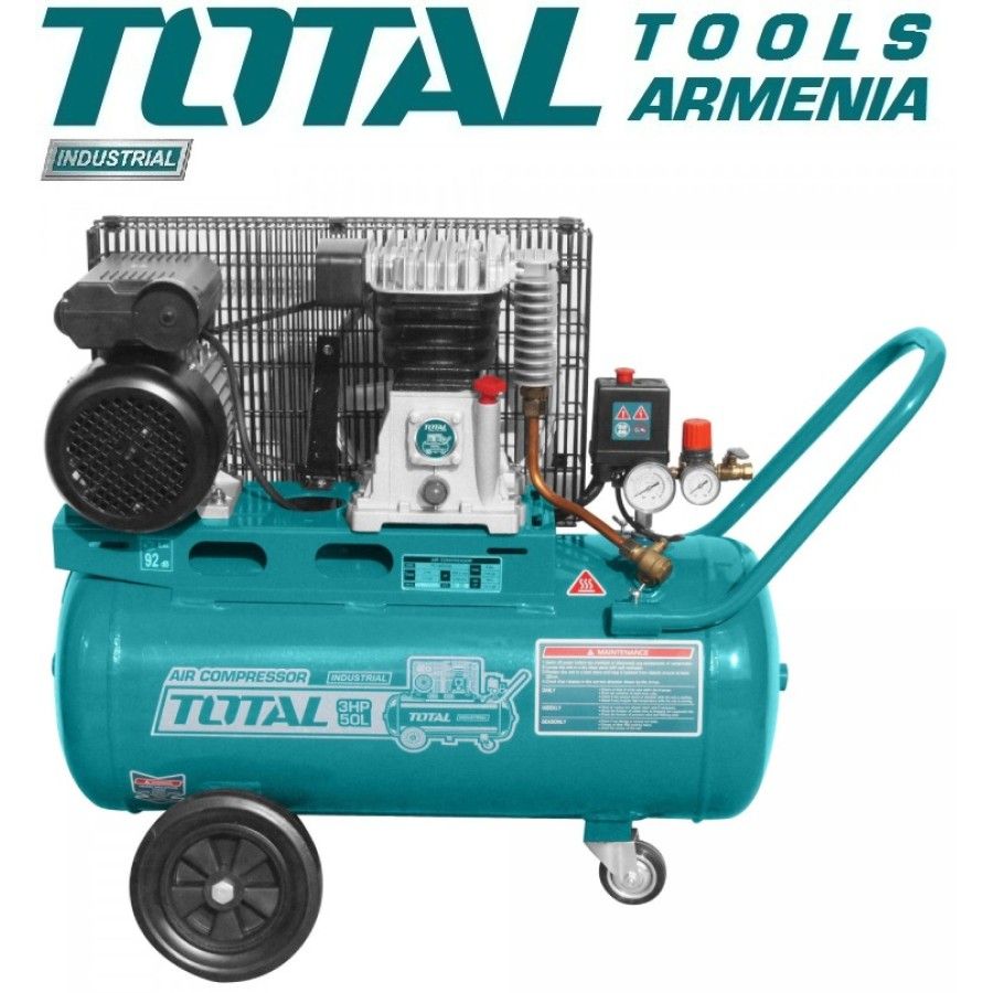 Воздушный масляный ременной компрессор 2.2kW TOTAL TC1300506 Тип - воздушо массленый ременной компрессор. Тип компрессора - поршневой коаксиальный. Напряжение - 220-240В. Частота - 50 Гц. Входная мощность - 2.2 кВт. Число оборотов - 1100 об / мин. Количество цилиндров компрессора - 2. Количество ступеней сжатия - 1. Объем бака - 50 л (13.2 галлона). Рабочее давление - макс. 8 бар (116 фунтов на кв. Дюйм). Производительность на входе - 220 л / мин Шум - 92 дБ. С ресивером; Легко перемещать; Удобный слив конденсата; Длительный срок службы. Транспортировочные колеса - да. Манометр - есть. Насос со смазкой - маслом. Упаковано в картонную коробку. Запасные части: Ремень TC1300506-SP-72 Сальник TC1300506-SP-33 Уплотнительное Кольцо Картера TC1300506-SP-27 Поршневое Кольцо TC1300506-SP-18 Коаксиальный воздушно-масляный компрессор TOTAL TC1300506 обладает высокой производительностью за счет прямого привода. Масляная ванна обеспечивает лучшую производительность при меньшем потреблении энергии. Прочный корпус подходит для любых условий использования. Наличие колес и ручки для транспортировки обеспечивает мобильность, подходящую для больших строительных площадок или промышленных корпусов. Встроенный манометр позволяет легко контролировать степень сжатия воздуха и снижает вероятность поломки подключенного инструмента.