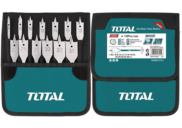 Набор сверл по дереву 13шт TOTAL TACSD70131 Тип - набор сверл. Мин. Диаметр сверла - 6 мм. Максимальный диаметр сверла - 38 мм. Длина - 152 мм. В комплекте - 13шт. Упаковано - тканевый мешок. Сверлильный материал - дерево. Сверла по дереву - 6, 8, 10, 12, 14, 16, 18, 20, 25, 28, 30, 32, 38мм.
