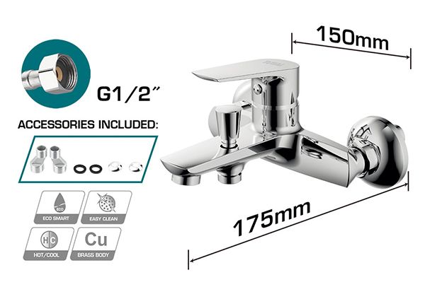 Однорычажный смеситель для ванны и душа TOTAL TSLBM31001 Размер 178x175x103мм Входной гибкий шланг 1/2 дюйма Надежная вставка регулятора расхода Качественный керамический картридж. Полированный и хромированный