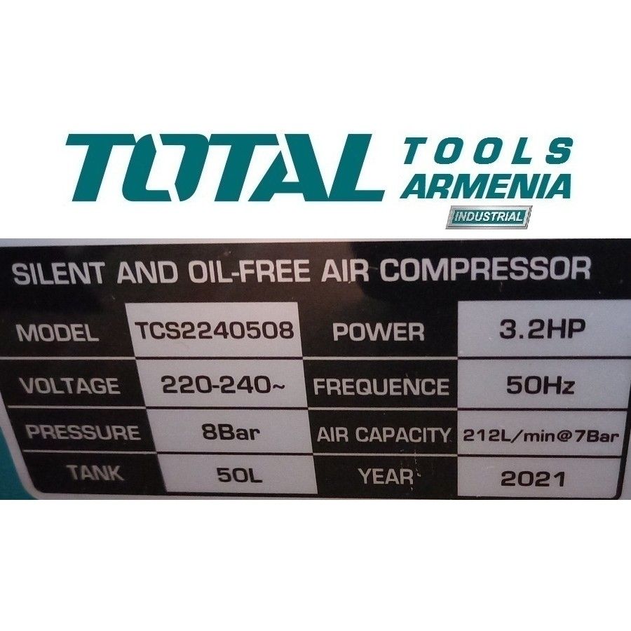 Անձայն առանց յուղի կոմպրեսոր 50 լ TOTAL TCS2240508 21289