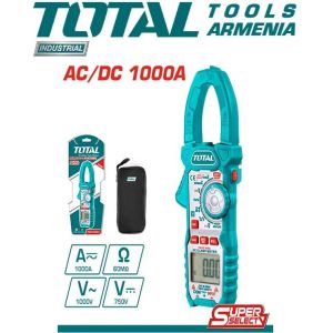 Токоизмерительные клещи переменного/постоянного тока TOTAL TMT4100051 Полученные результаты отображаются на ЖК-дисплее с крупными цифрами.Выбор предела измерения величин осуществляется вручную, достаточно установить нужное положение многопозиционного переключателя. Наличие подсветки облегчает работу в слабоосвещенных местах. Функции: Индикатор поэзии Освещение экрана Умение следовать инструкциям. 6000 отсчетов для автоматического сохранения данных Удержание данных Переменный ток: 60А/600А/1000А±(2,5% +8) Постоянный ток: 60A/600A/1000A±(2,5% +8) Напряжение переменного тока: 60 мВ/600 мВ/6 В/60 В/600 В ± (0,8% +3) 750 В ± (1% +4) Напряжение постоянного тока: 60 мВ/600 мВ/6 В/60 В/600 В ± (0,7% +3) 1000 В ± (0,8% +2) Сопротивление: 600 Ом/6 кОм/60 кОм/600 кОм/6 МОм ± (0,8% +3) 60 МОм ± (1,2% +3) Емкость: 10 нФ/100 нФ/1000 нФ/10 мкФ/100 мкФ/1000 мкФ/10 мФ/100 мФ ±(4,0% +5) Температура: -20~1000℃ (-8~1832°F) Бесконтактное обнаружение напряжения Проверка диодов ЖК-дисплей с подсветкой индикация низкого заряда батареи Авто-выключение С функцией вспышки
