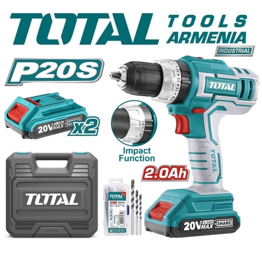 АккумуляторнаяУдарная Дрель - отвертка (шуруповерт)TotalTIDLI20031 20 В , 55Нм + 1 батарея Ударная дрельTIDLI2003 имеет 3 функции: дрель / резьбовой молоток / отвертка, продукт поставляется в очень солидном матерчатом мешке, включая: 1 корпус, 1 зарядное основание и 2 батареи . Аккумуляторный молоток TotalTIDLI20031 является частью нового продукта, который Total выпускает в 2020 году, высокого качества, но с низкой ценой. Запасные части: Винт M4x8 С Шайбой TIDLI20031-SP-5 Мотор TIDLI20031-SP-8 Коробка Передач TIDLI20031-SP-2 Напряжение: 20 В Скорость холостого хода: 0-400 / 0-1900 / мин Максимальная скорость удара: 28500 / мин Максимальный крутящий момент: 55 Нм Емкость патрона: 2,0-13 мм Настройки крутящего момента: 23 + 1 + 1 Бесключевой патрон с автоблокировкой Механическая двухступенчатая передача Функция блокировки шпинделя С аккумулятором 2шт. С быстрым зарядным устройством 1 шт., 1 час С аксессуарами 4 шт. И винтом Гарантия на обслуживание 1 год Магнитный держатель + биты + Аксессуары 50 шт Чемодан/Кейс Дрель-шуруповерт ударная снабжена быстрозажимым металлическим патроном, что обеспечивает быструю и удобную замену оснастки. Для ослабления и выкручивания крепежа предусмотрена функция реверса. Встроенная подсветка позволяет работать в темное время суток или при плохом освещении. Модель функционирует от литий-ионного аккумулятора, который отличается легкостью и мощностью, отсутствием саморазряда и эффекта памяти Этот продукт питается от литиевой батареи 20 В, новая технология батареи должна помочь сделатьпродукт у более прочной и продлить срок ее эксплуатации, корпус изготовлен из слоя АБС, выдерживает силу и хорошая теплостойкость. Устройство имеет компактную конструкцию, которая удобна для хранения и переноски при необходимости.