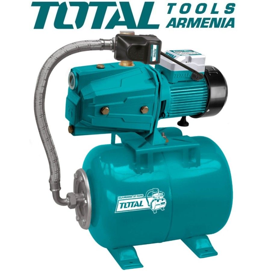 Автоматический самовсасывающий струйный насос 750Вт TOTAL TWP47506 Напряжение: 220 В - 240 В - 50 Гц․ Мощность: 750 Вт (1 л.с.) . Медный двигатель .Латунная крыльчатка . Частота вращения։ 3450 об / мин․ Производительность։ 3600 л / час․ Максимальная высота: 45 м․ Максимальнаявысотавсасывания: 9 м․ Диаметр трубы: вход - 1″, выход - 1″. Степень защиты: IPX4. Цилиндрический бак: 1шт 24л. Переключатель давления: 1шт . Шланг из нержавеющей стали: 1 шт. Манометр: 1 шт. Латунь 3-ходовой: 1шт . Длина кабеля: 0.15 м․ Гарантия։ 1 год. Вес: 20 кг. Самовсасывающий струйный насосе TWP311006 используется прочный сплав, хорошая прочность.В частности, двигатель изготовлен из 100% чистой медной проволоки, что помогает машине работать бесперебойно и имеет меньшую мощность.Пропеллеры изготовлены из прочной меди. Изготовлен из высококачественных материалов, поэтому он не окисляется, абразив и удобен для использования в самых разных условиях окружающей среды, не беспокоясь о каких-либо проблемах.Материал устойчив к коррозии, выдерживает суровые условия работы, для длительного использования. Изделие выполнено в компактном виде, удобно перемещается, быстро и не занимает много места.
