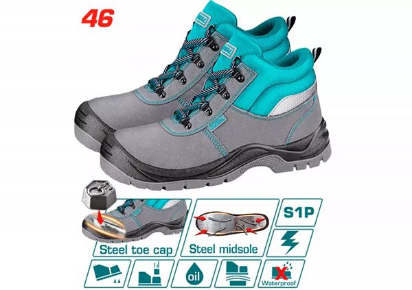 Ботинки защитные N46 TOTAL TSP201S1P.46 Доступны размеры 39-46 Размер 46 Защита базовая безопасность (S1P) Исключительная устойчивость к углеводородам Цвет синий и серый Противоскользящая подошва Межподошва - сталь Дышащая ткань Защита пальцев с ударопрочностью до 200 Дж Антистатический Амортизатор Защита от воды Ботинки со стальным носком, верхняя часть обуви состоит из верха обуви fly knit и подошвы из полиуретана (ПУ) двойной плотности, которая дышит и удобна в носке.