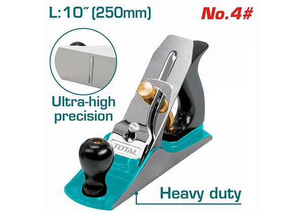 Деревообрабатывающий Ранда 250мм TOTAL THTP0204 Длина : 250 мм материал: чугун 2шт T12 со стальными лезвиями Чистый продукт. масса: 1,7 кг Ширина макета : 50 мм Толщина Лады: 1,8 мм Регулировочная пластина: латунь