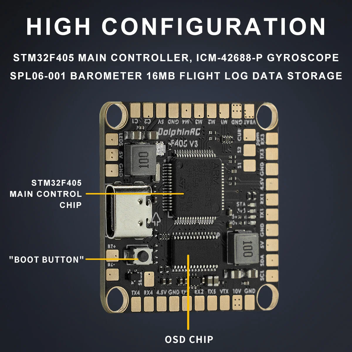 - MCU: STM32F405RGT6Cortex® M4 @ 168MHz