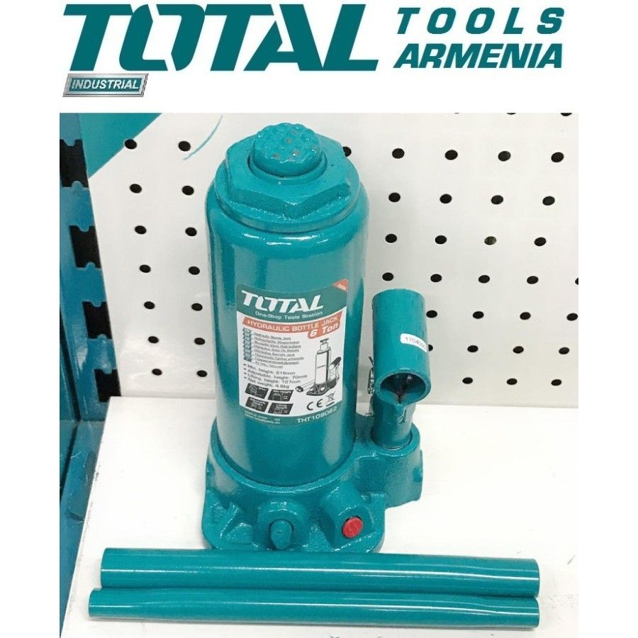 Домкрат гидравлический 6т TOTAL THT109062 Высота подборщика 216 мм Высота подъема 413 мм Грузоподъемность 6т Вес 4.6 кг Рабочий ход 197 мм Тип одноплунжерный Гидравлический домкрат TOTAL THT109062 предназначен для использования в автосервисах, на станциях ТО, в автопарках различных предприятий. Данная модель применяется при обслуживании среднетоннажного грузового автотранспорта весом не более 6 тонн. Домкрат поднимает груз на высоту до 413 мм, но не используется для удержания. Наличие предохранительного клапана защищает устройство от поломки из-за перегрузок.