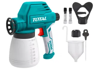 Электрическая Краскораспылитель TOTAL TT1006100Вт . Краскораспылитель TOTAL TT1006 предназначен для нанесения на поверхности лакокрасочных покрытий. Данная модель обеспечивает высокую производительность благодаря давлению до 0.2 бар, что обеспечивает расход 280 мл/мин. Эргономичная рукоятка с нескользящим покрытием отвечает за удобство работы. Нижнее расположение бачка обуславливает большой объем краски для продолжительных работ без перегрева. В комплект входят: Контейнер для краски. Запасные части։ Переключатель TT1006-SP-6 Мощность: 10 0 Вт. П роизводительность։ 280л/мин. Максимальная вязкость - 30 дин/с. Диаметр сопла։ 0.6 - 0.8мм. Давление продувки:0.1 - 0.2 бар. Емкость бака։ 0.8л. Вес։ 1.4 кг. Гарантия։ 1 год