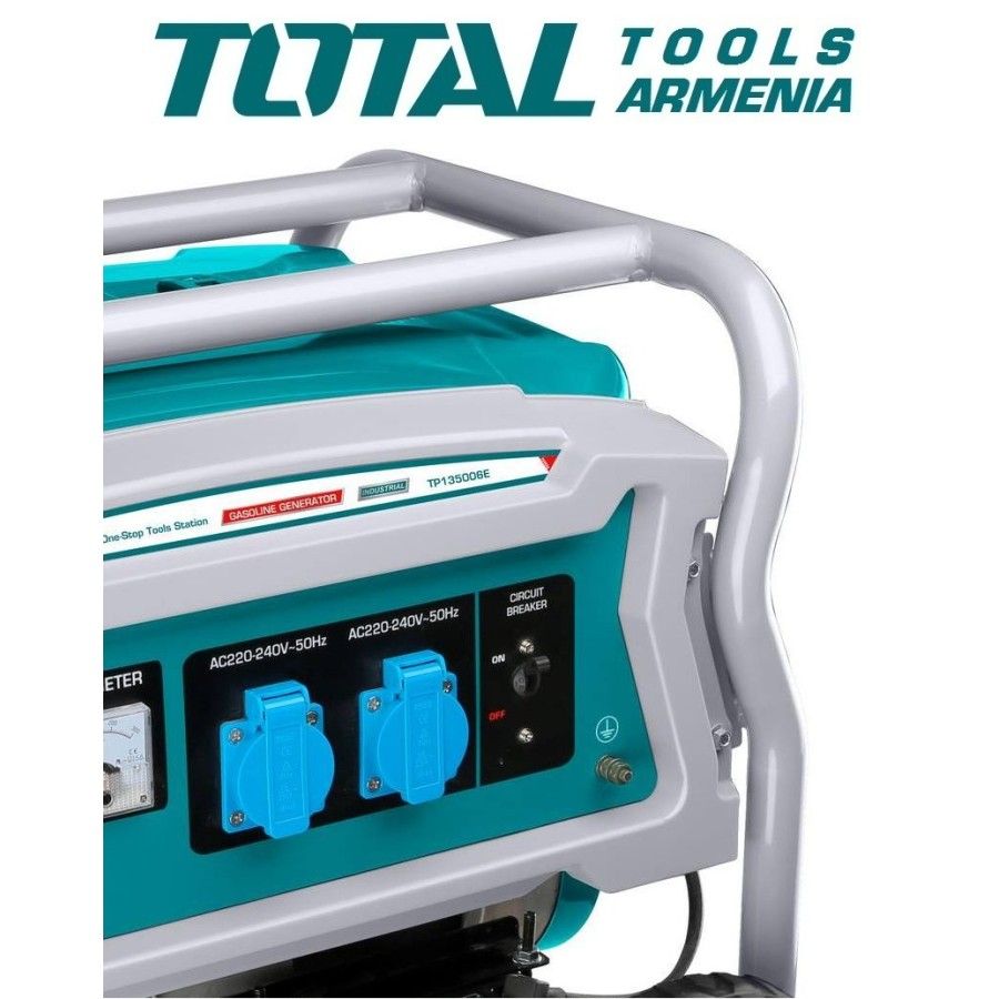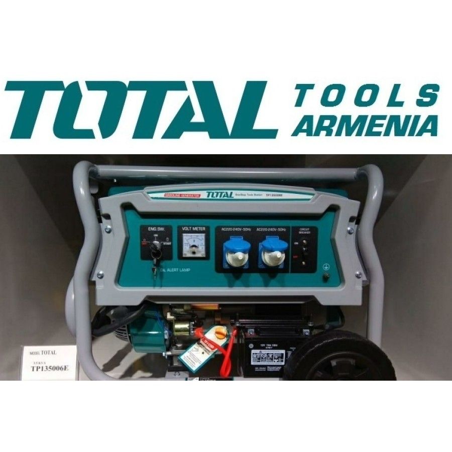 Генератор бензиновый (Стартерам) TP135006E 3500 Вт Предназначен для оперативного снабжения электроэнергией. В случае сбоев энергоснабжения позволяет обеспечить освещениемдом, а также работу основных бытовых устройств (электрический чайник, холодильник, обогреватель и пр.). Благодаря простой и компактной конструкции машина проста в использовании и перемещении. Скорость работы машины достаточно плавная, плавная, поэтому шум низкий. При запуске двигатель очень быстрый, чувствительный к взрыву и может экономить топливо. Максимальная мощность : 3500 Вт. Постоянная мощность: 2800 Вт. Электропитание: 220 В - 240 В / 50 Гц / 1 фаза. Номинальная частота: 50Гц. Источник питания: DC-12V / 8.3A. Н оминальная скорость : 3000об / мин․ Д вигатель : 4-Т актный - OHV . Емкость цилиндра: 208 мл. Время непрерывной работы : 11 часов . Система охлаждения вентилятором. Система запуска: зажигание / блокировка Электрический . Система зажигания: TCI . Сила двигателя: 8 л.с. Емкость топливного бака: 15 л. Шум: 95дБ. Вес: 51 кг. Генератор с медной катушкой, со вспомогательной ручкой и колесами.Гарантия։ 1 год.