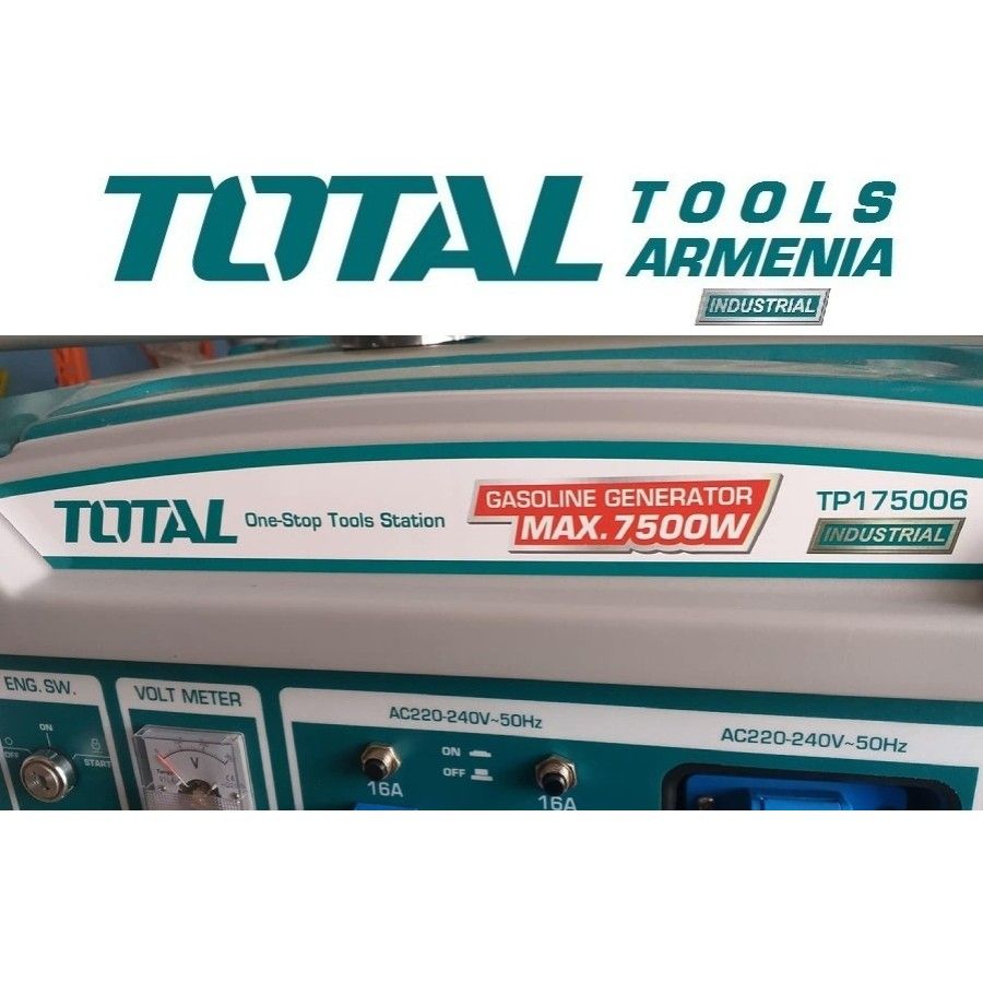 Генератор бензиновый (Стартерам) TP175006 7500 Вт предназначен для оперативного снабжения электроэнергией. В случае сбоев энергоснабжения позволяет обеспечить освещениемдом, а также работу основных бытовых устройств (электрический чайник, холодильник, обогреватель и пр.). Запасные части: Карбюраторный Комплекс TP175006-SP-14-38 Максимальная мощность : 7500 Вт. Постоянная мощность: 6000 Вт. Частота: 50 Гц ․ : Регулятор напряжения: AVR. Переменный ток 3 x 230 вольт. Постоянный ток 1 х 12 вольт (8,3 а). Н оминальная скорость : 3000об / мин․ Д вигатель : 4-Т актный . Рабочий объем цилиндра: 420 мл. Мощность двигателя: 15 л.с. Система запуска: механическая + электрическая. Система зажигания: TCI. Емкость топливного бака: 25 Л․ Шум: 95дБ․ Вес: 88 кг․ Гарантия։ 1 год
