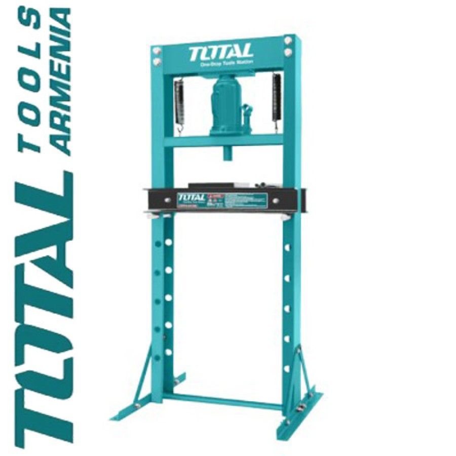 Гидравлический цеховой пресс 12 тTOTAL THSPR1205 Устройство управляется вручную, гидравлический двигатель значительно упрощает работу. Максимальный вес: 12 тонн Рабочий диапазон: 0~610 мм Вес нетто: 42 кг