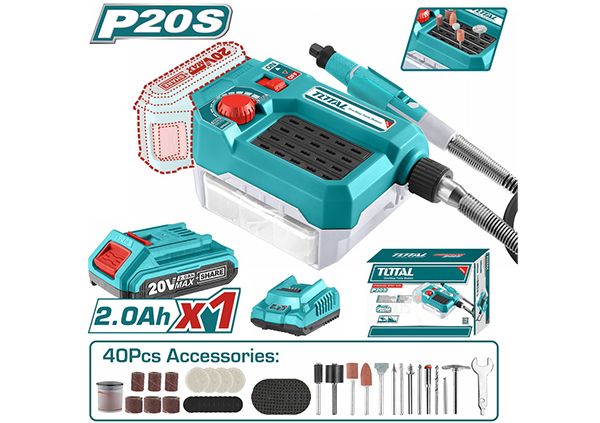 Гравер TOTAL TMGLI20011 Напряжение: 20 В. Скорость: 5000-33000 об / мин. Размер цанги: 3,2 мм. Регулятор скорости. Гарантия: 1 год. Коллекция включает в себя 40 штук. Отрезной круг 5шт. 10 штук наждачной бумаги. Шлифовальный круг с хвостовиком 3шт. 2шт абразивный хвостовик. 6шт абразивная лента. 1 шт. сверло. 3 алмазных бита. 2 шт мандрелла. 1шт стальная проволочная щетка. 1шт гаечный ключ. Насадка для полировки. Резак hss. Гибкий вал. В комплект также входят: 1 шт аккумулятор 2,0 А * ч ( TFBLI2001 ). 1 шт зарядное устройство ( TFCLI2001 ).