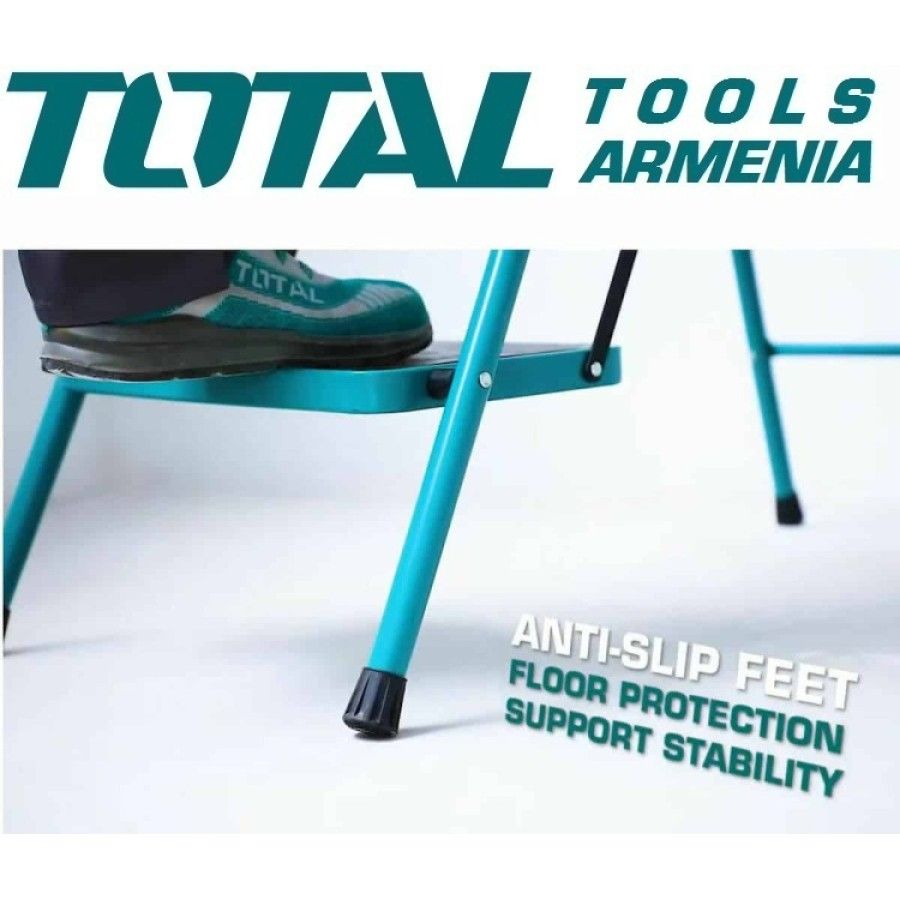 Лестница металлическая 6 ступеней TOTAL THLAD09061 Материал: сталь Количество ступеней: 6 Размер шага: 38*26 см Размер в разложенном виде: 122,5*51*170,5 см Размер в сложенном виде: 50,5*14*193,5 см Толщина трубки: 9 см Максимальная нагрузка: 150 кг 6-ступенчатая лестница THLAD09061 предназначена для выполнения различных работ на высоте. Ступени имеют нескользящую поверхность, что сводит к минимуму возможность поскользнуться во время работы. Его используют как в быту, так и в сфере строительства.