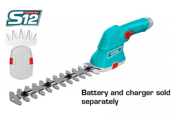 Литий-ионные садовые ножницы TOTAL TSTLI1201 Модель №. TSTLI1201 Напряжение 12В Максимум. скорость 1300 / мин Расстояние между зубьями 8 мм Материал лезвия Углеродистая сталь SK5 Батарея в комплект не входит, совместима с батареями 2,0 Ач и 4,0 Ач Зарядное устройство в комплект не входит Электрические ножницы предназначены для придания формы декоративным заборам в приусадебных участках. Оборудован пластиковым кожухом для защиты руки пользователя и режущими лезвиями длиной 41 см.