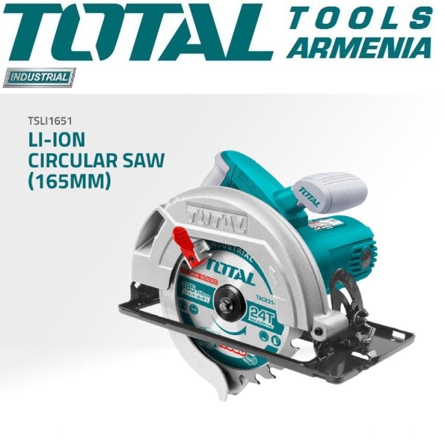 Литий-ионные циркулярная пила 20В TOTAL TSLI1651 Дисковая пила TOTAL TSLI1651 используется для распила заготовок из древесины. Наличие защитного кожуха повышает безопасность работы. Двухкомпонентная рукоятка отвечает за надежный хват, что обеспечивает лучший контроль над инструментом. Функциональность достигается за счет наклонной подошвы. Быстрый доступ к угольным щеткам позволяет заменить из самостоятельно , без обращения в сервисный центр. В комплект не входят: аккумулятор и зарядное устройство. Запасные части։ Переключатель TSLI1651-SP-16