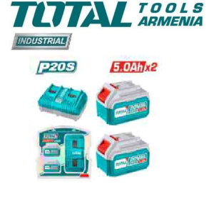 Литий-ионный аккумулятор и комплект зарядного устройства TOTAL TFBCPK2425 Напряжение аккумулятора: 20 В. С литий-ионным аккумулятором из 2шт ( TFBLI2053 ). С зарядным устройством 1 шт. ( TCLI2034E ). Литий-ионный аккумулятор емкостью 5,0 Ач. Индикатор заряда батареи. Одна батарея подходит для всех нескольких инструментов P20S. Входное напряжение: 220-240 В ~ 50/60 Гц. Выходное напряжение: 20В. Выходной ток: 4А. Вмещает до 2шт аккумуляторных батарей P20S. Два активных порта для одновременной зарядки аккумулятора. Упакован в двойной блистер.