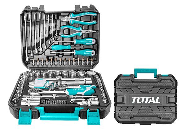 Набор инструментов из 100 предметов TOTAL THKTHP21006 1 шт. Ключ с храповым механизмом 1/2 дюйма, 45 зуб. 18 шт. 1/2 дюйма шестигранных головок: 10-11-12-13-14-15-16-17-18-19-20-21-22-23-24-27-30-32 мм 2 шт. 1/2 дюйма удлинитель 125 мм (5 дюймов) / 250 мм (10 дюймов) 1 шт. 1/2 дюйма Универсальный шарнир 2 шт. шестегранная головка для свечи зажигания 1/2 дюйма 16MM и 21MM 1 шт. 1/2 дюйма x 3/8 дюйма трехсторонний адаптер 1 ключ с трещоткой на 1/4 дюйма, 45 зуб. 13шт 1/4 дюйма шестигранная розетка: 4-4,5-5-5,5-6-7-8-9-10-11-12-13-14 2 шт. 1/4 дюйма удлинитель 50 мм (2 дюйма) / 100 мм (4 дюйма) 1 шт., Раздвижная Т-образная планка 1/4 дюйма 1 шт. 1/4 дюйма Универсальный шарнир Комбинированный ключ из 8 шт. 6-8-10-12-14-15-17-19 мм 1 шт. 6-дюймовые диагональные кусачки 1 шт., 6-дюймовые плоскогубцы Отвертка SL6,5x100 мм - 1 шт. Отвертка PH2x100 мм - 1 шт. Головка с битом 14 шт: T10-T15-T20-T25-T27-T30-T35-SL4-SL5.5-SL6.5-PH1-PH2-PZ1-PZ2 9 шт. Шестигранный ключ 1.5-2-2.5-3-4-5-6-8-10MM 20 шт. 1/4 дюйма насадки для отвертки SL3, SL4, SL5, SL6, PH0, PH1, PH2, PH3, PZ0, PZ1, PZ2, PZ3, T10, T15, T20, T30, H3, H4, H5, H6 25 мм Держатель отвертки 1 шт. 1 шт. 1/4 дюйма x 150 мм ручка спиннера