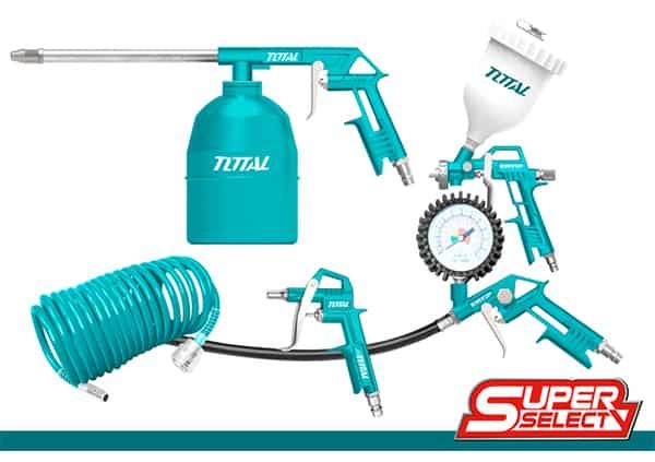 Набор пневмоинструментов 5шт TOTAL TATK053 Набор пневмоинструмента 5 в 1 TOTAL TATK053 предназначен для выполнения широкого спектра работ. Данный набор изготовлен из металла, что гарантирует продолжительный срок службы за счет устойчивости к механическим повреждениям. Высокая функциональность достигается за счет пяти инструментов входящих в комплектацию. В наборе: воздушный шланг, продувочный пистолет, покрасочный пистолет, промывочный пистолет, пистолет для накачки шин. Шланг Длина: 5 м Диаметр: 8 мм с коннектором 1/4 ". Пистолет для продувки воздухом Номинальное давление: ≤100 фунтов на квадратный дюйм Максимальное давление: 150 фунтов на квадратный дюйм Пистолет-распылитель Давление воздуха: 3,0-5,0 бар Пистолет для мойки Номинальное давление: 90 фунтов на квадратный дюйм Максимальное давление: ≤150 фунтов на квадратный дюйм Емкость: 750 куб. Пистолет для накачивания пневматических шин Номинальное давление: ≤150 фунтов на квадратный дюйм Максимальное давление: 320 фунтов на квадратный дюйм
