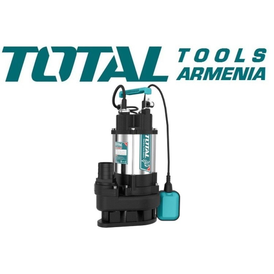 Погружной насос для сточных вод 750Вт TOTAL TWP775016 Напряжение - 220-240В 50Гц. Мощность - 750 Вт (1 л.с.). Максимум. высота - 13М. Максимум. расход - 350л / мин. Основание из нержавеющей стали. Винты из нержавеющей стали. Вал из нержавеющей стали. Диаметр трубы - 2 дюйм. Длина кабеля - 9м. Тепловая защита. Упаковано в картонную коробку. Погружной насос предназначен для работы с условно грязной водой. Возможность перекачивания жидкости со скоростью 21 м3 / ч. Поплавковый выключатель исключает работу всухую и предотвращает повреждение насоса. Для удобства переноски предусмотрена ручка.