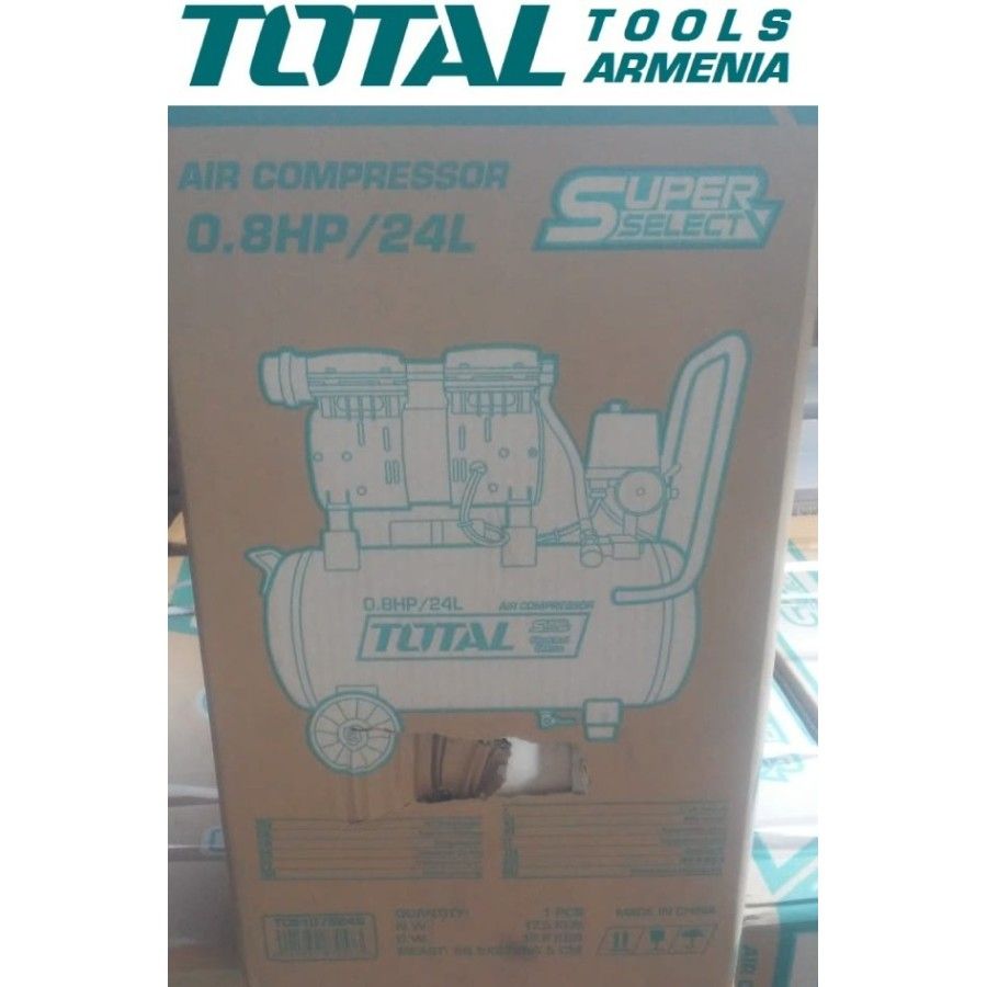 Тихий безмасляный воздушный компрессор 24 л 600Вт TOTALTCS1075248 Запасные части: Цилиндр TCS1075248-SP-8 Статор TCS1075248-SP-31 Реле Давления TCS1075248-SP-58 Ротор TCS1075248-SP-33 Тип - Тихий безмасляный воздушный компрессор . Тип компрессора - Безмасляная система . Напряжение - 220-240В. Частота - 50 Гц. Входная мощность - 600 Вт. Число оборотов - 1440 об / мин. Объем бака - 24 л (6.3 галлона). Рабочее давление - макс. 8 бар (116 фунтов на кв. Дюйм). Производительность на входе - 110 л / мин.Производительность на входе - 40 л / минпри7 баре . Шум - 60 дБ. С ресивером; Легко перемещать; Удобный слив конденсата; Длительный срок службы. Транспортировочные колеса - 2 шт . Манометр - есть. Двигатель из медной проволоки и Двигатель с низким уровнем шума. Упаковано в картонную коробку . Тихий безмасляный воздушный компрессор TOTALTCS1075248 обладает высокой производительностью за счет прямого привода. Прочный корпус подходит для любых условий использования. Наличие колес и ручки для транспортировки обеспечивает мобильность, подходящую для строительных площадок или промышленных корпусов. Встроенный манометр позволяет легко контролировать степень сжатия воздуха и снижает вероятность поломки подключенного инструмента.