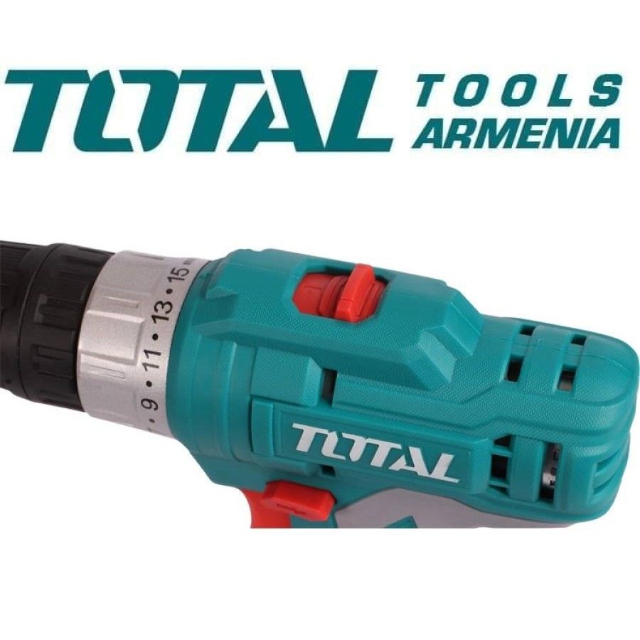 Ударная дрель с аккумулятором 12В TOTAL TOSLI23022 Напряжение: 12 В Скорость без нагрузки: 0-400/0-1500 об/мин Максимальная скорость экспозиции: 22500/мин Максимальный крутящий момент: 20 Нм Максимальное количество ходов: 0,8-10 мм Максимальный крутящий момент: 18+1+1 Напряжение зарядки: 220-240 Вт ~ 50/60 Гц Встроенный рабочий свет Коллекция включает в себя: 2 аккумуляторных блока по 1,5 Ач 1 зарядное устройство 1 набор вращающихся отверток из 45 предметов 1 набор из 16 сверл по металлу, бетону и дереву
